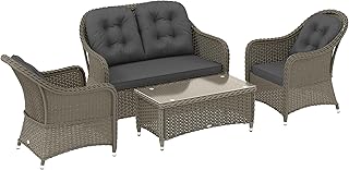 4-Piece Outdoor Rattan Furniture Set PE Wicker Patio Bistro Sofa, Lounge Chairs & Glass Table - Stackable, Weather-Resistant Ideal for Garden, Lawn, B