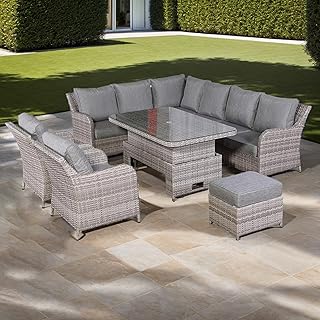 Isobella Range Elite Right Hand Corner Sofa Setwith Rising Table And Arm Chair In Grey Rattan