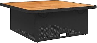 vidaXL Outdoor Dining Table - Black Poly Rattan and Solid Acacia Wood, Spacious Square Tabletop for Patio Garden Dinner - Seats 4